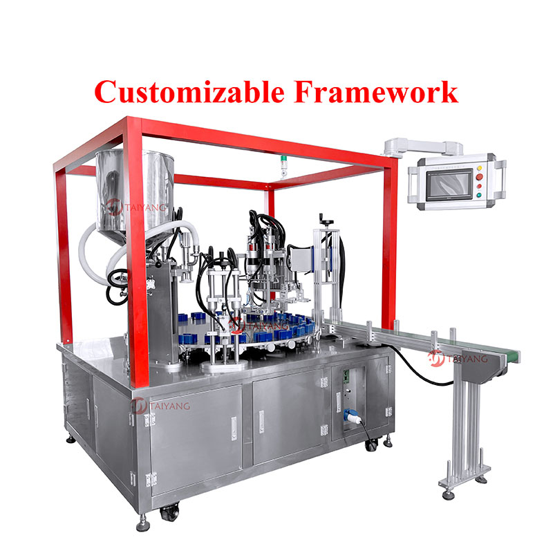 தியாங் இரண்டு-தலை லோ லோஷன் கிரீம் நிரப்புதல் மற்றும் கேப்பிங் மெஷின் மெஷின் ஆகியவற்றின் சட்டகம் உயர்தர மற்றும் அழகான அலுமினிய சுயவிவரங்களுடன் வடிவமைக்கப்பட்டுள்ளது, சீல் தட்டுக்கு 304 எஃகு, திரவத்தை நிரப்ப 316 எஃகு, மற்றும் அனைத்து நியூமேடிக் கூறுகளும் தைவான் ஏர்டாக் ஆகும். மோட்டார், மற்றும் ஷ்னீடருக்கு சுவிட்ச் கியர்.